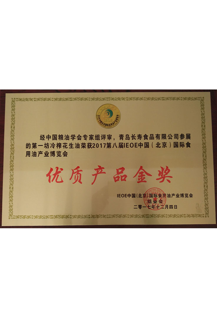 2017年12月 獲得中國糧油學(xué)會(huì)授予的“優(yōu)質(zhì)產(chǎn)品金獎(jiǎng)”